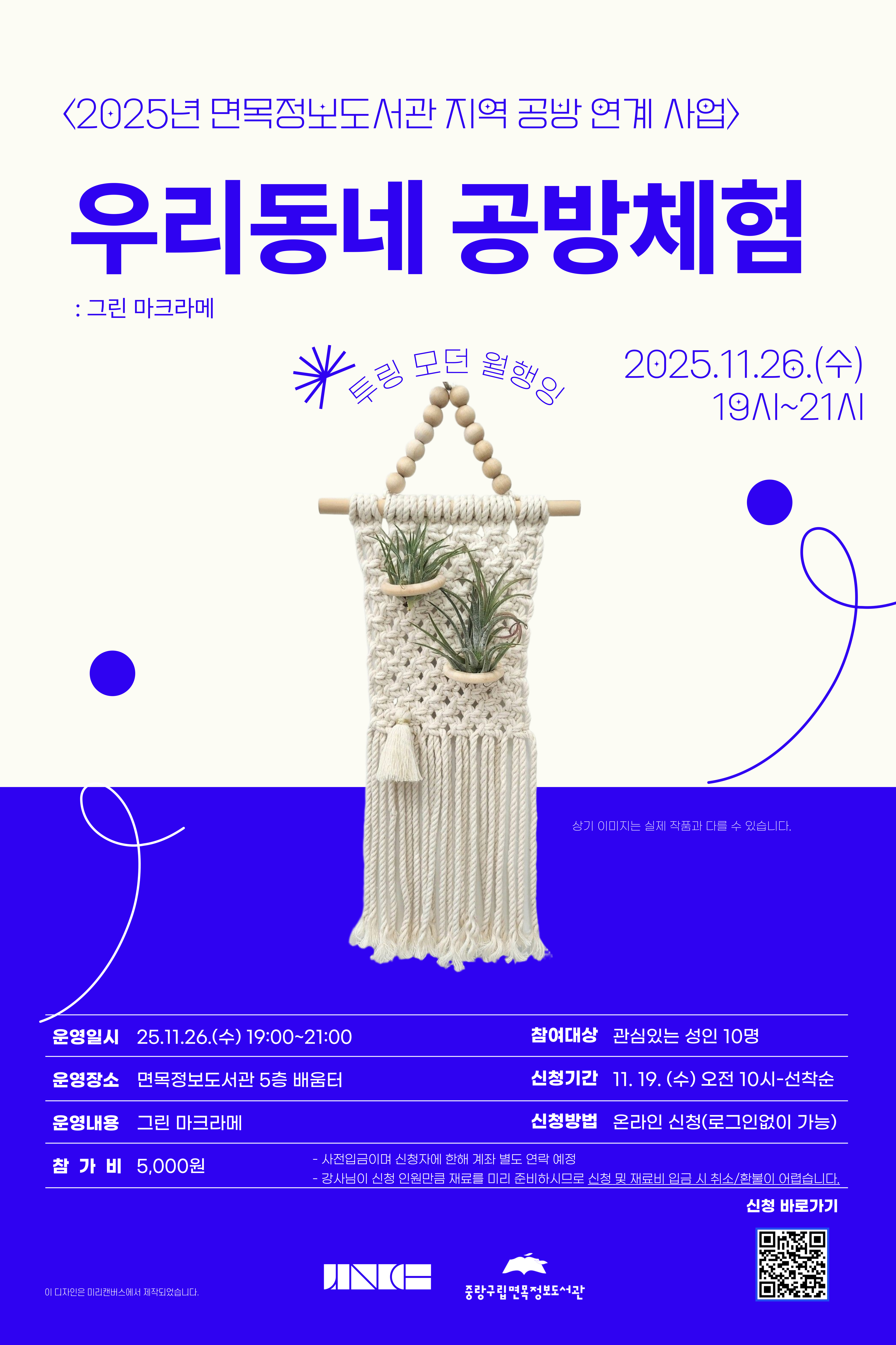 면목 지역 공방 연계 사업 <우리동네 공방체험 : 그린 마크라메> 안내