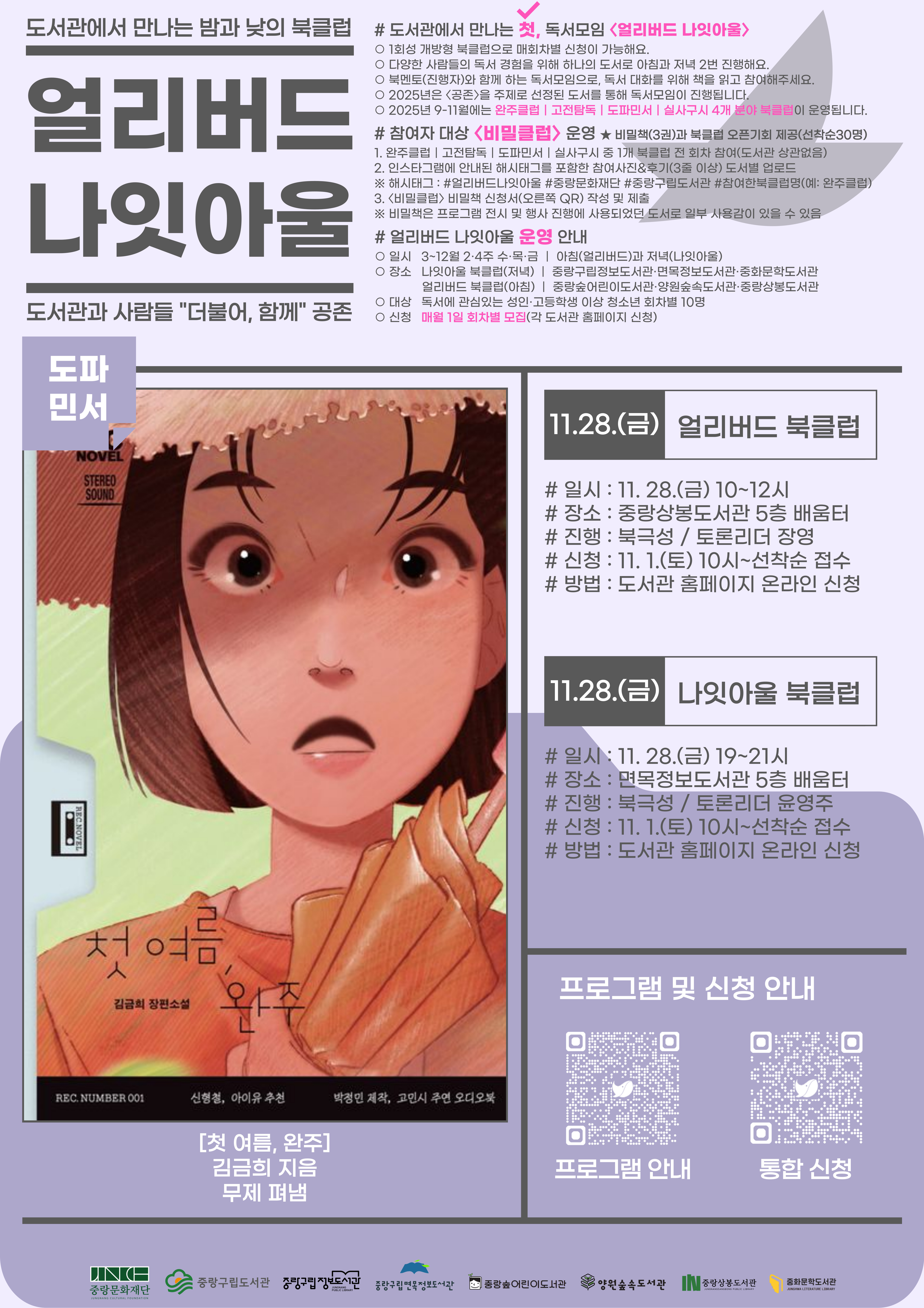 면목[얼리버드 나잇아울] 11.28.(금) 나잇아울 <도서: 첫 여름, 완주>