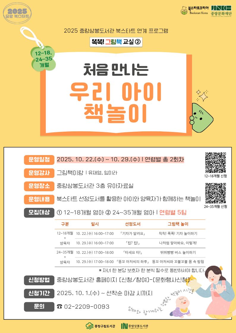 ● 문의: 중랑상봉도서관 유아어린이 자료실 (02-2209-0093, 안내음성 후 3번)