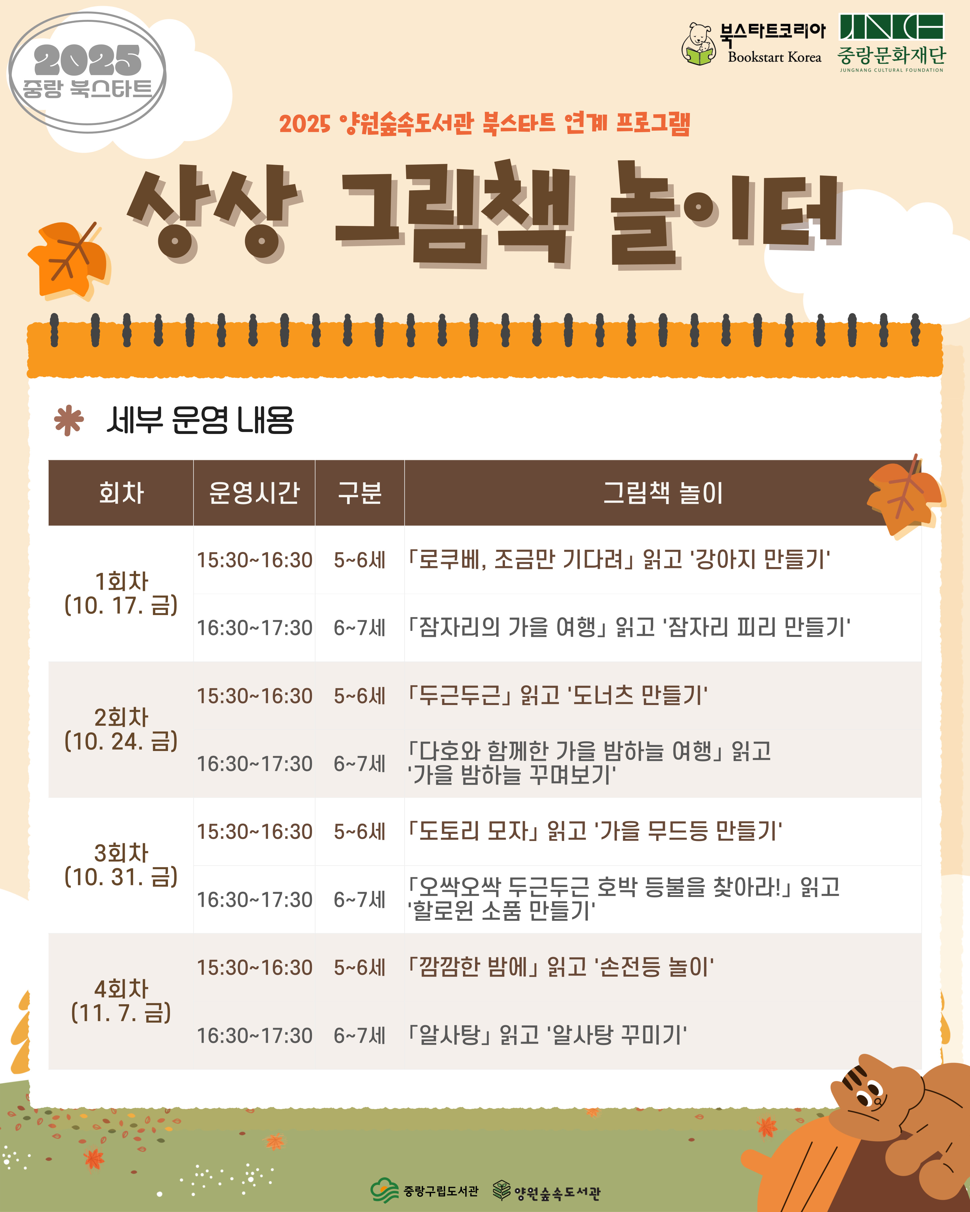양원 2025년 양원숲속도서관 북스타트 연계 책놀이 「상상 그림책 놀이터」 참여자 모집 안내