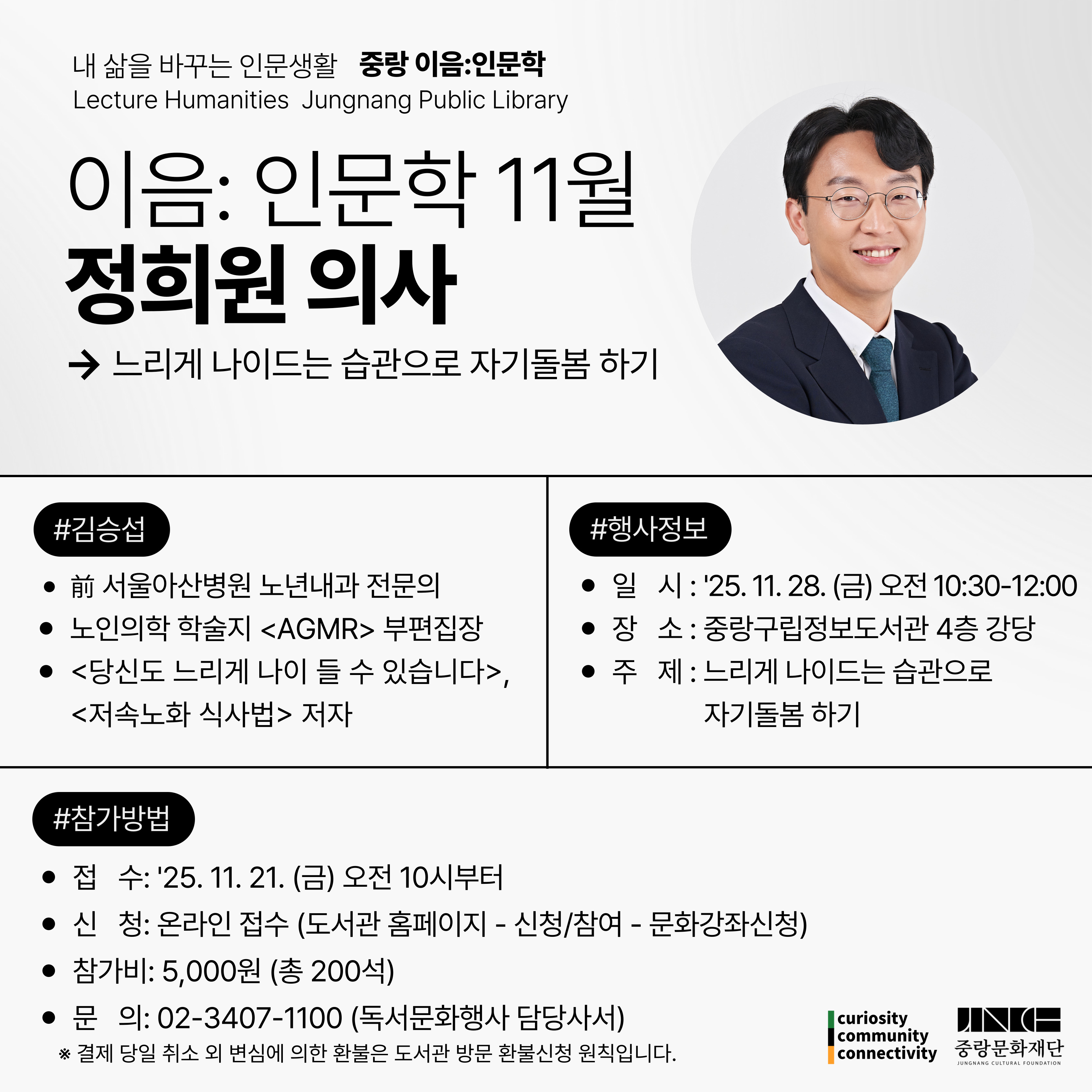중랑 【 중랑 이음:인문학 】 정희원 의사 강연 및 연계 프로그램 안내