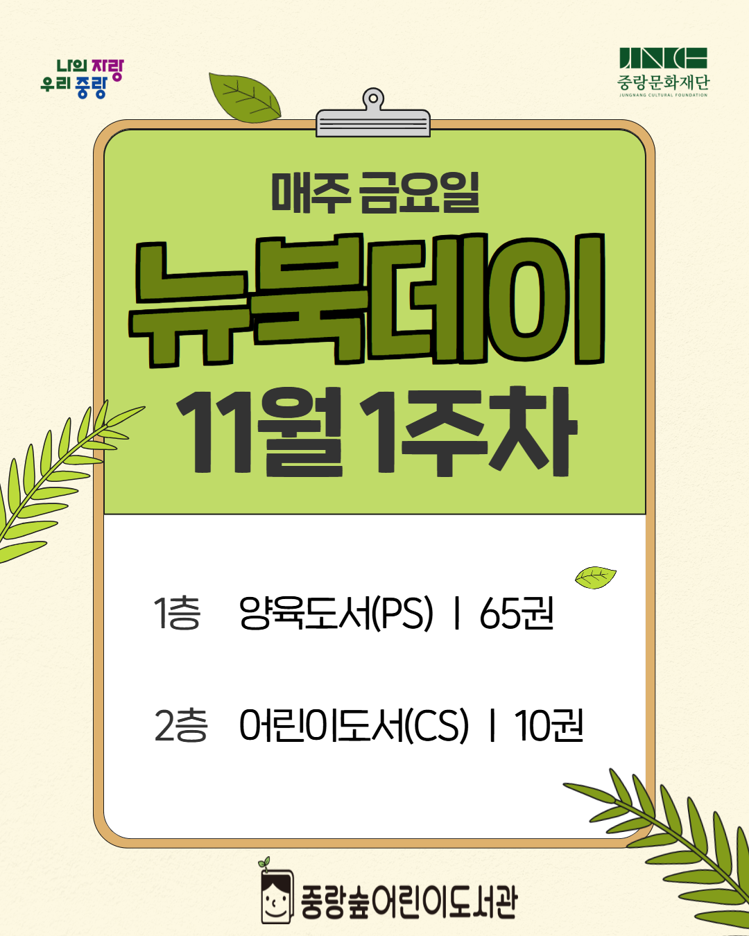 중랑숲 11월 1주차 뉴북데이 안내 (총 75권 입고)