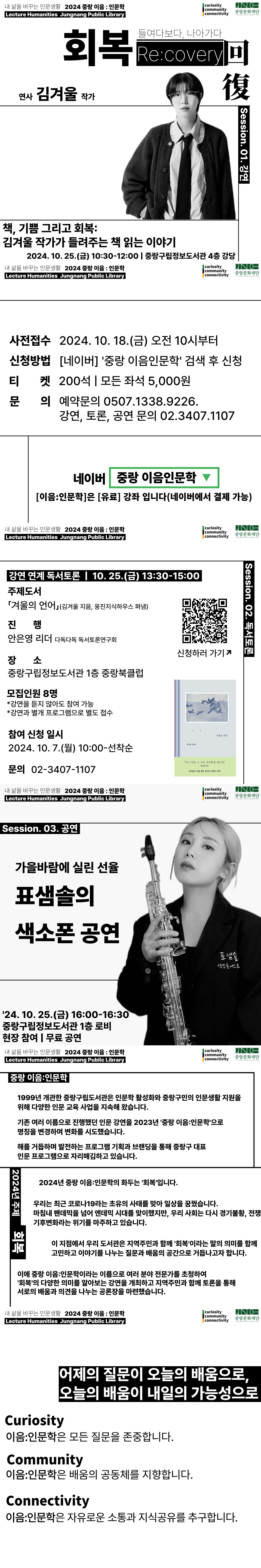 공통 【 중랑 이음:인문학 】 김겨울 작가 강연 및 연계 프로그램 안내