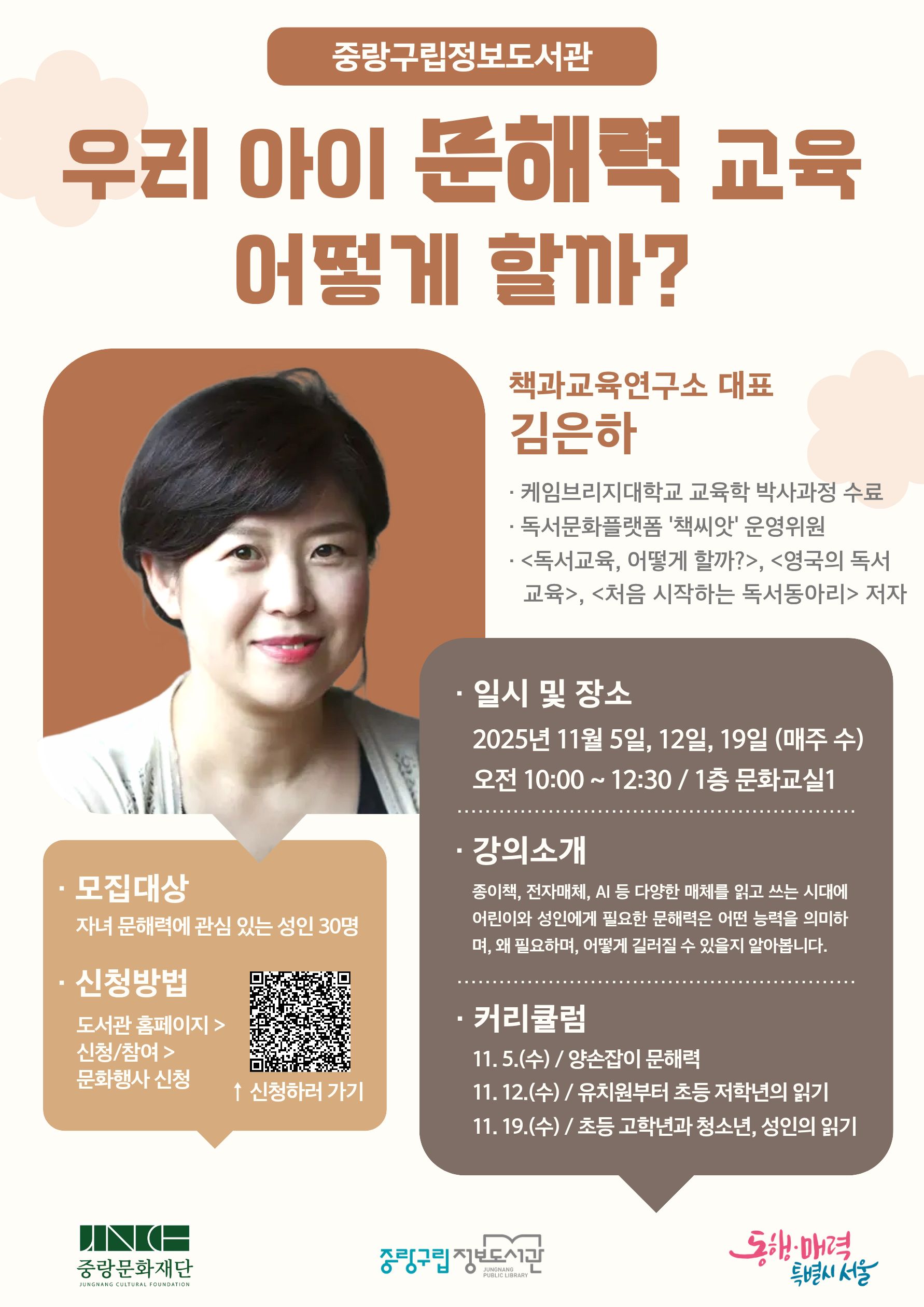 □ 문의 : 중랑구립정보도서관 문화행사 담당 (☎ 02-3407-1127)