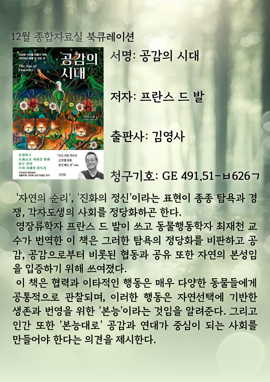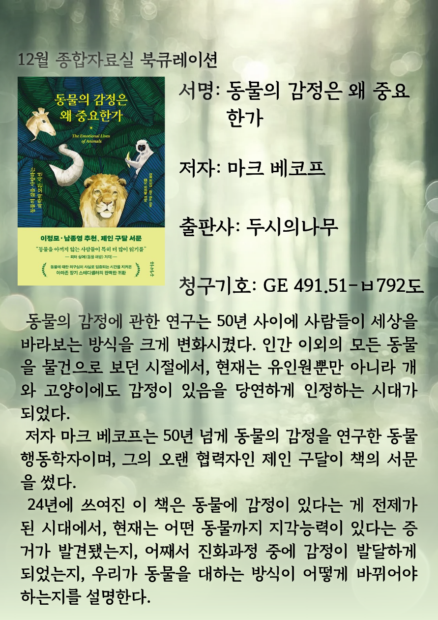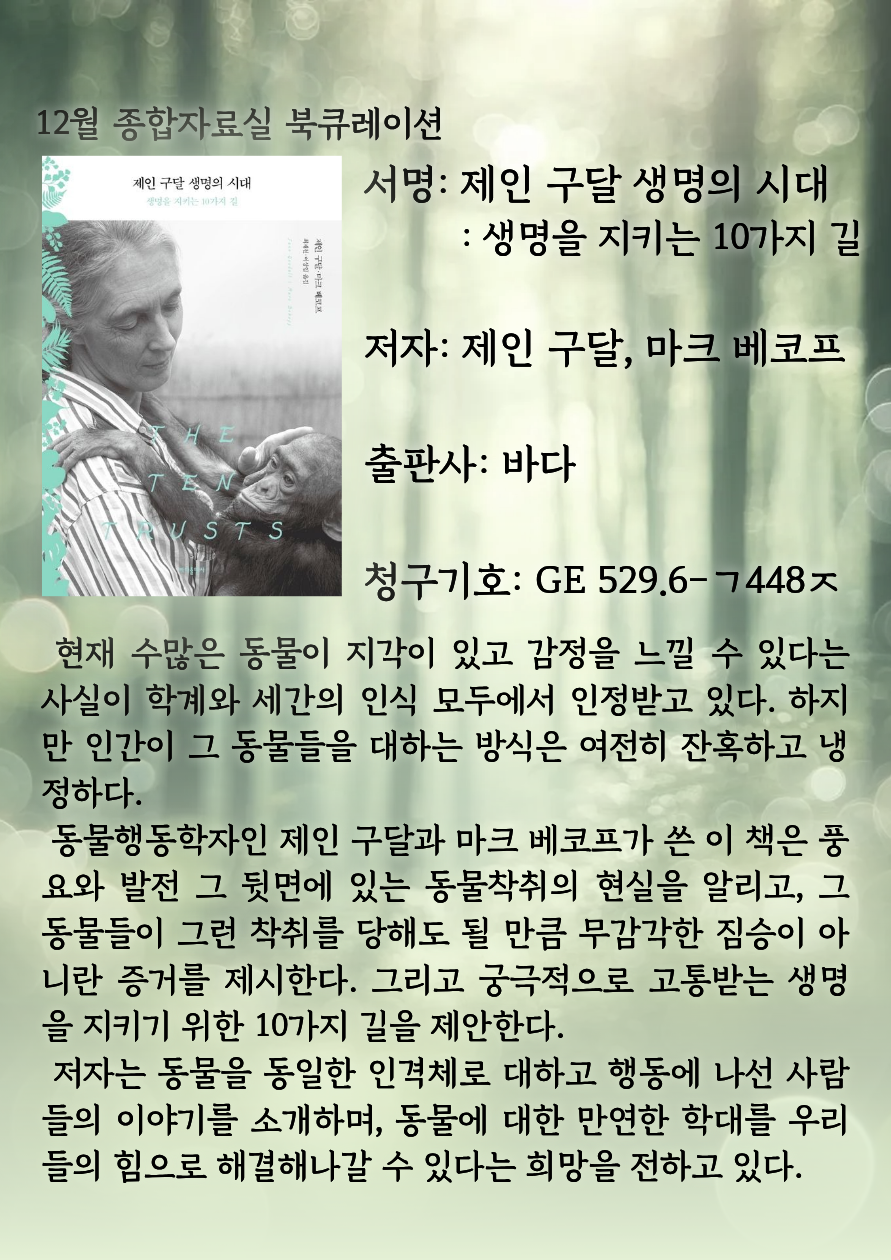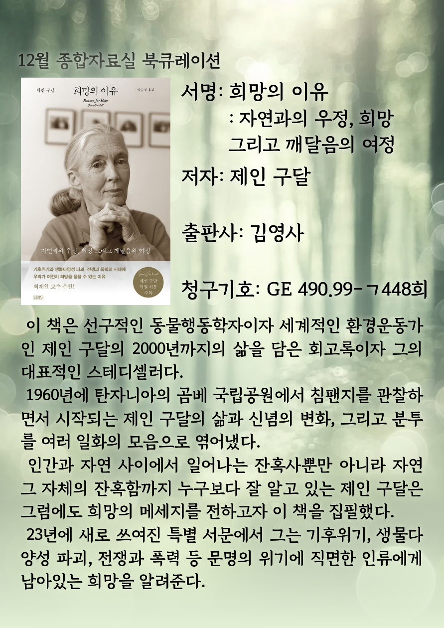 중랑2025년 12월 책을 잇다 "재인 구달의 길"